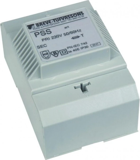 1. Transformator 1-fazowy modułowy bezpieczeństwa PSS 40N 230/ 24V 1,25A, na szynę DIN, IP20, Ta 40, 17000-1414 160.17
