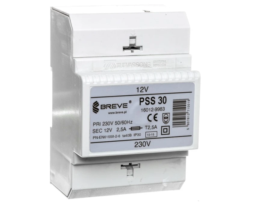 Transformator 1-Fazowy Modułowy Bezpieczeństwa Pss 30 230/ 12V 2,5A, Na Szynę...