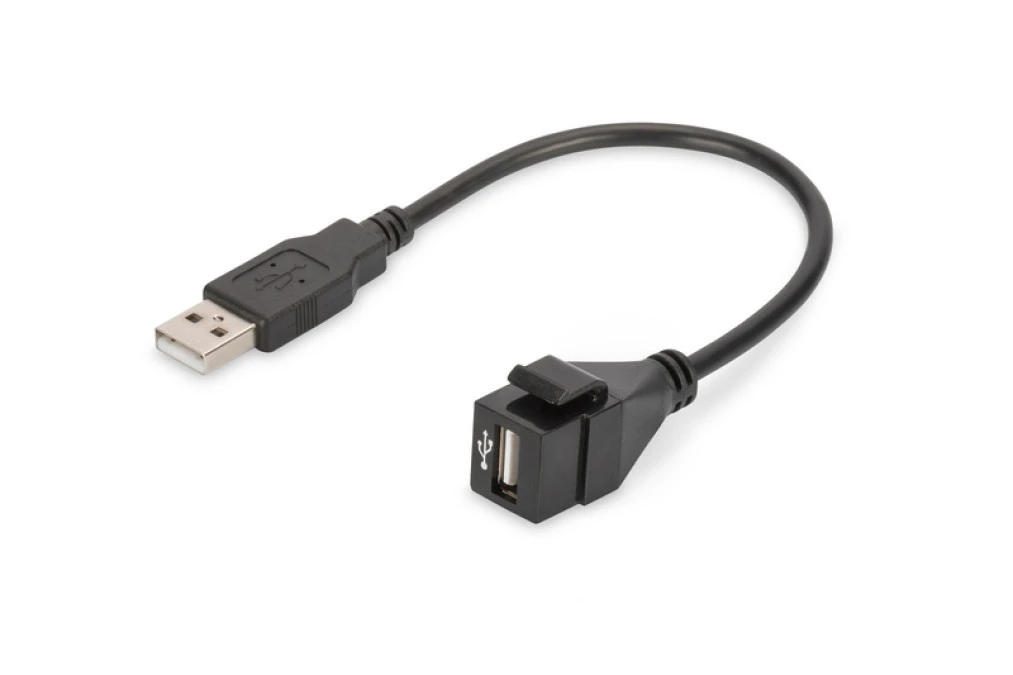 Moduł Keystone USB 2.0 z kablem 16cm łącznik do gniazd i pustych paneli żeński/męski czarny DN-93402