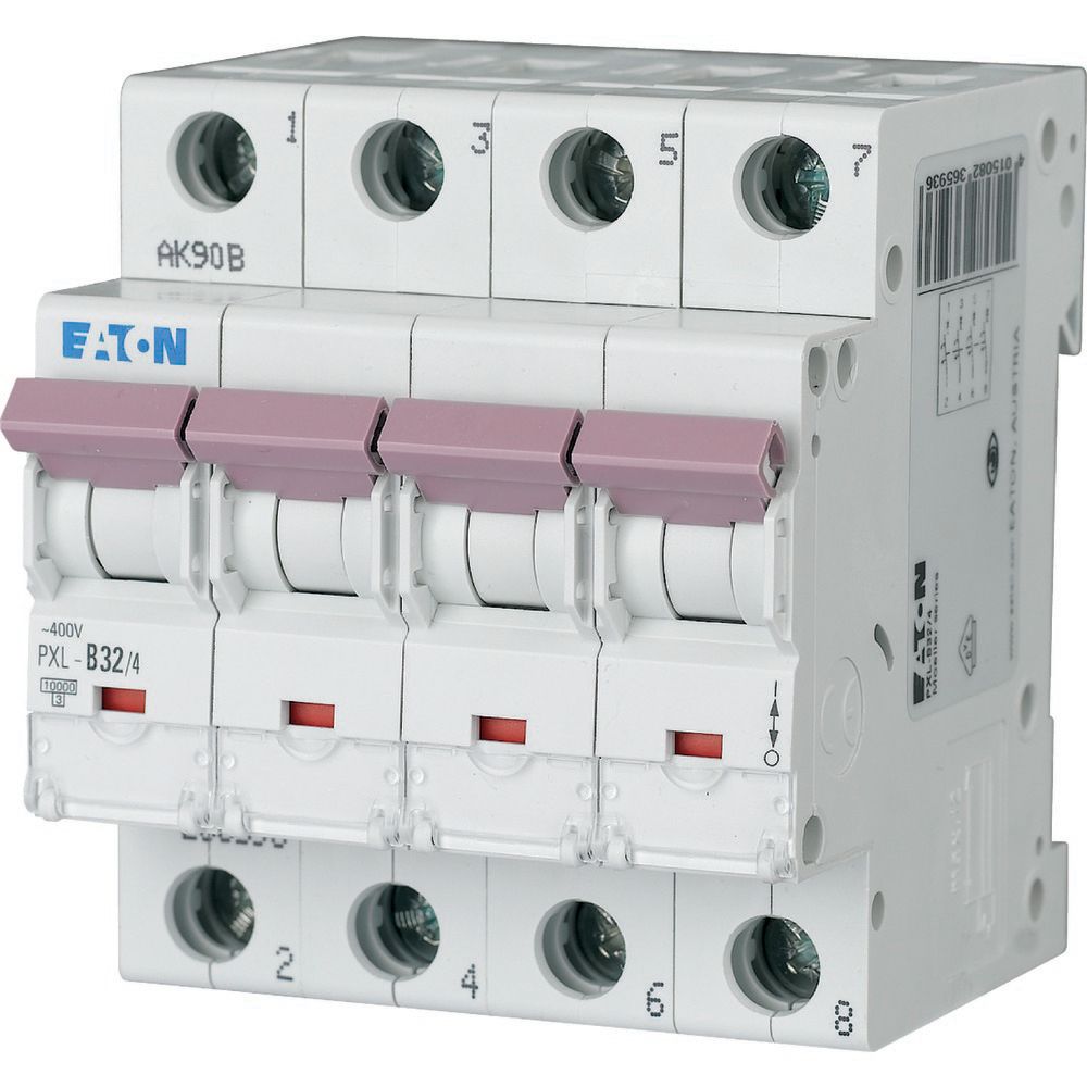 4. Wyłącznik nadprądowy MCB, Typ B, 4-biegunowy, 32A, 400V, Eaton, PXL 863.46