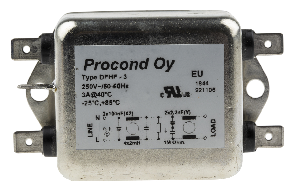 15. Filtr RFI 3A 1MΩ 250 V AC 400Hz 2 x 2 mH RS PRO Montaż w obudowie 286.25