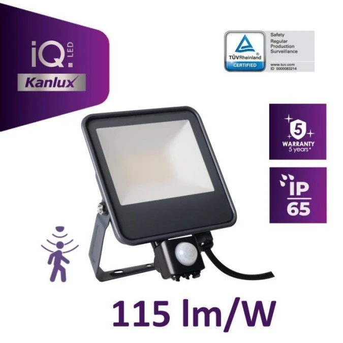 Projektor z czujnikiem IQ-LED FL-30W-NW-SE 3450lm 4000K barwa neutralna IP65 5 lat gwar. TUV czarny 33887