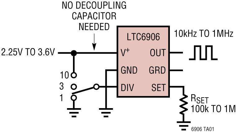 Micropower, 10kHz to 1MHz Resistor Set Oscillator in SOT-23