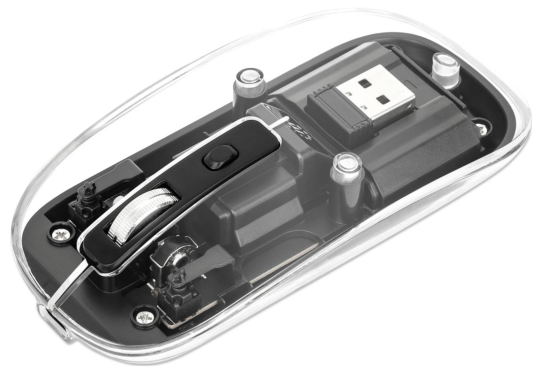 Mysz bezprzewodowa Manhattan Mouse Ottico Wireless 1600 Dpi con Micro Ricevitore USB Nero Trasparente 800 dpi, 1200 dpi,