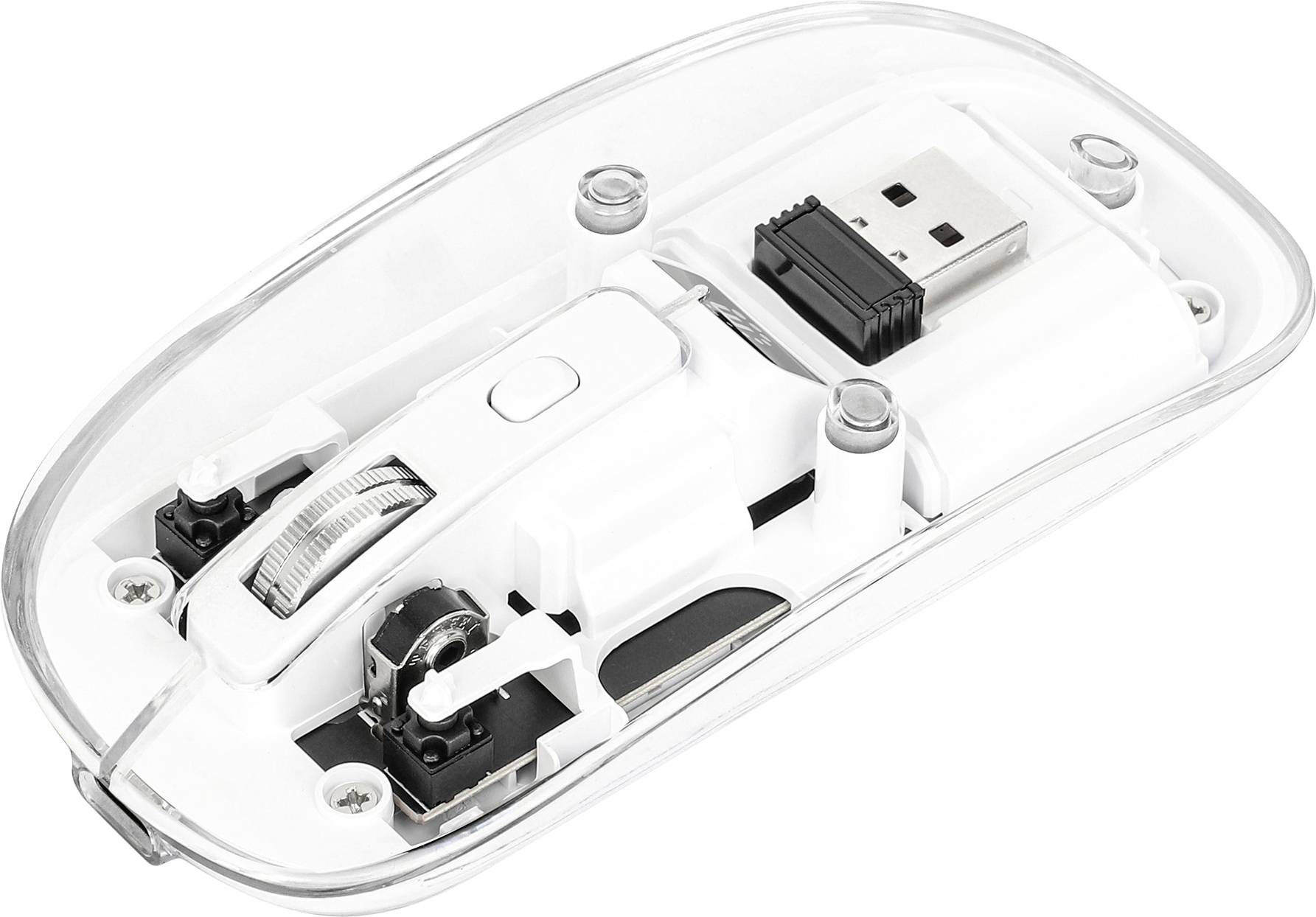 MANHATTAN Przezroczysta, akumulatorowa mysz bezprzewodowa USB RGB LED Oświetlenie białe