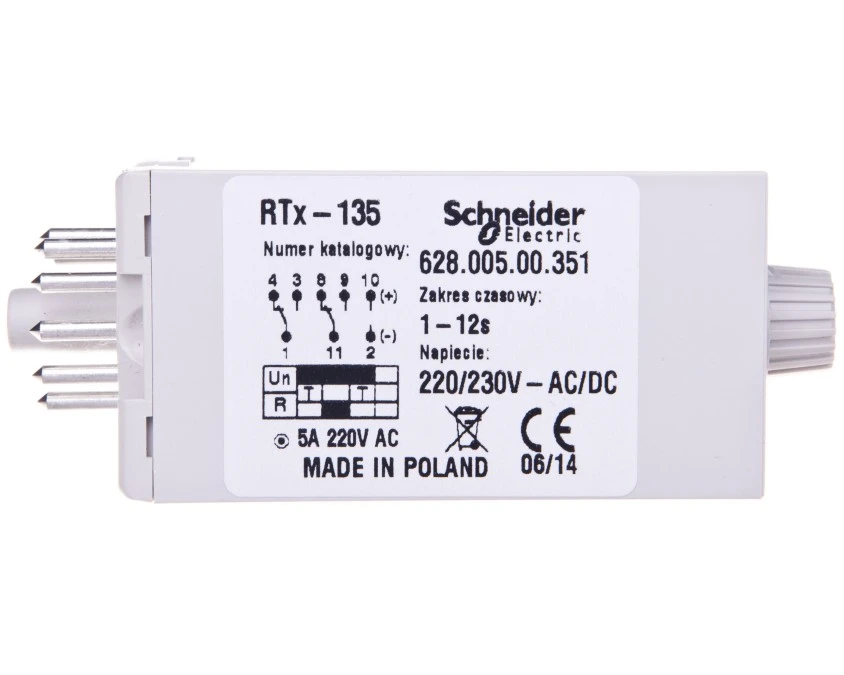 13. Przekaźnik czasowy 2P 5A 1-12sek 220-230V AC/DC załączanie na nastawiony czas RTX-133 220/230 12SEK 579.63