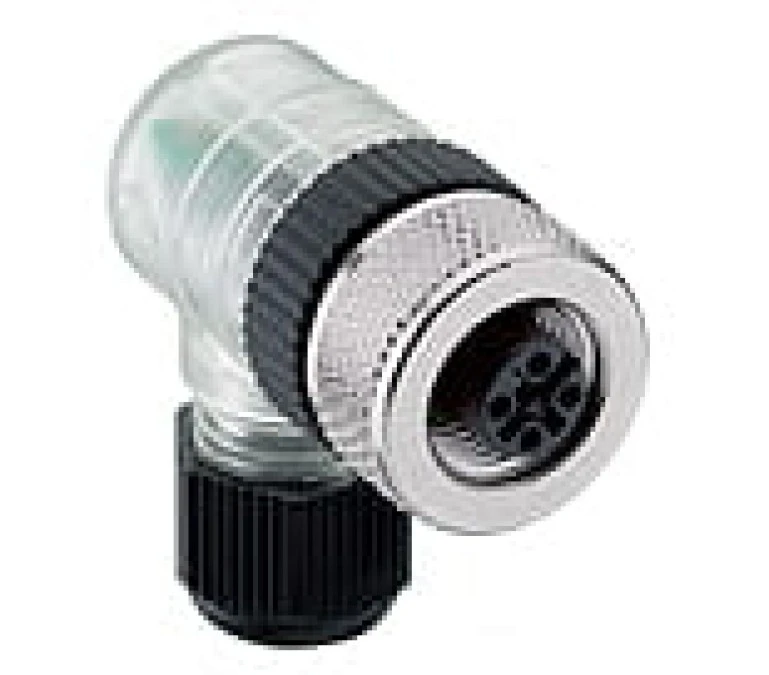 4. Złącze do samokonfekcjonowania M12 żeńskie kątowe 4-polowe z gwintowanym złączem z diodą LED RKCW/LED 4/9 67.34