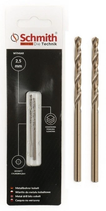 Wiertło do metalu kobaltowe 2,5mm wiertła 2szt HSS-Co Schmith