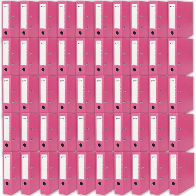 12. Zestaw 50szt segregatorów biurowych A4 75mm na dokumenty i akta Różowy 390.16