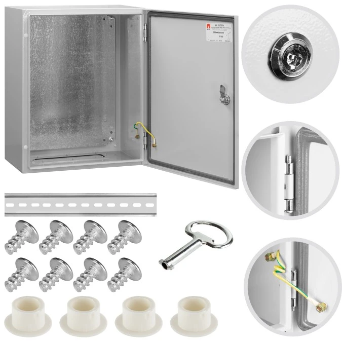 6. Obudowa hermetyczna rozdzielnia metalowa z płytą montażową 500x400x250 IP65 natynkowa NEKU 308.52