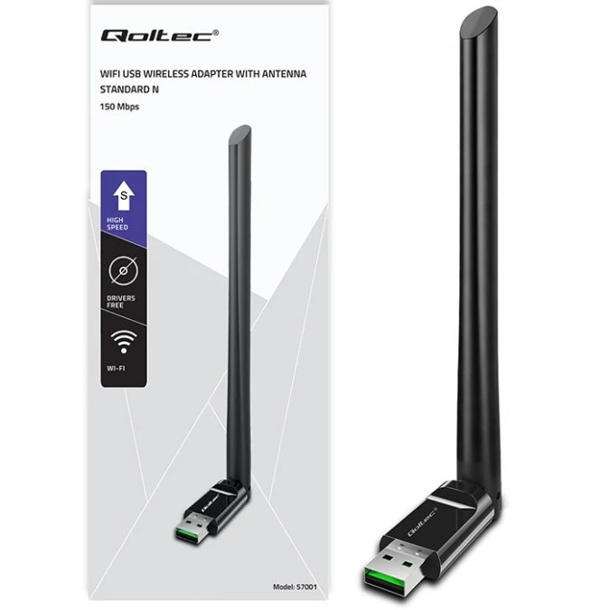 Qoltec Karta sieciowa zewnętrzna Adapter Wi-fi USB z anteną 6dBi Standard N USB 2.0 150Mb/s 2.4GHz