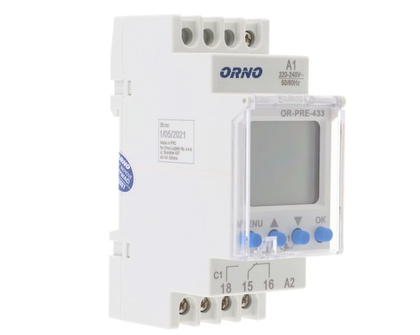 Elektroniczny programator czasowy, 52 programy, 3 języki menu, 2 moduły, DIN TH-35mm OR-PRE-433