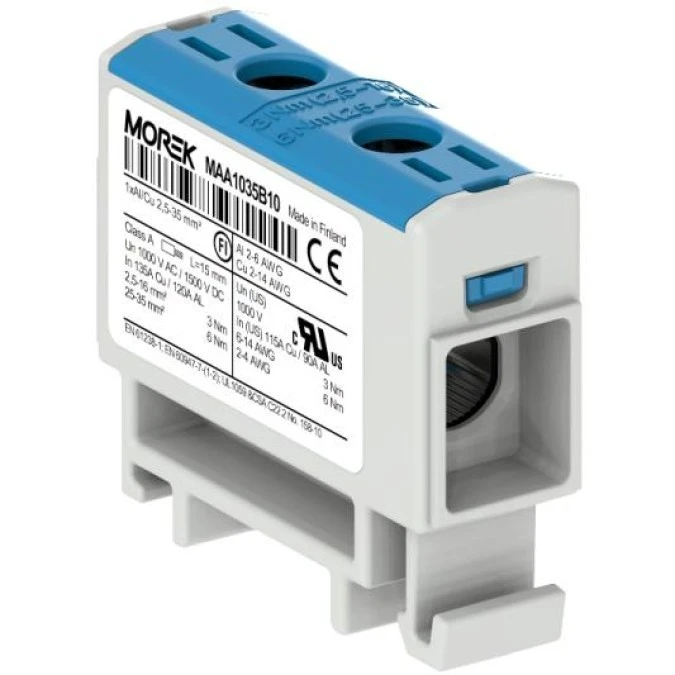 Złączka szynowa 1-torowa Al/Cu 2,5-35mm2 135A 1500V na TH35 niebieski OTL35 MOREK