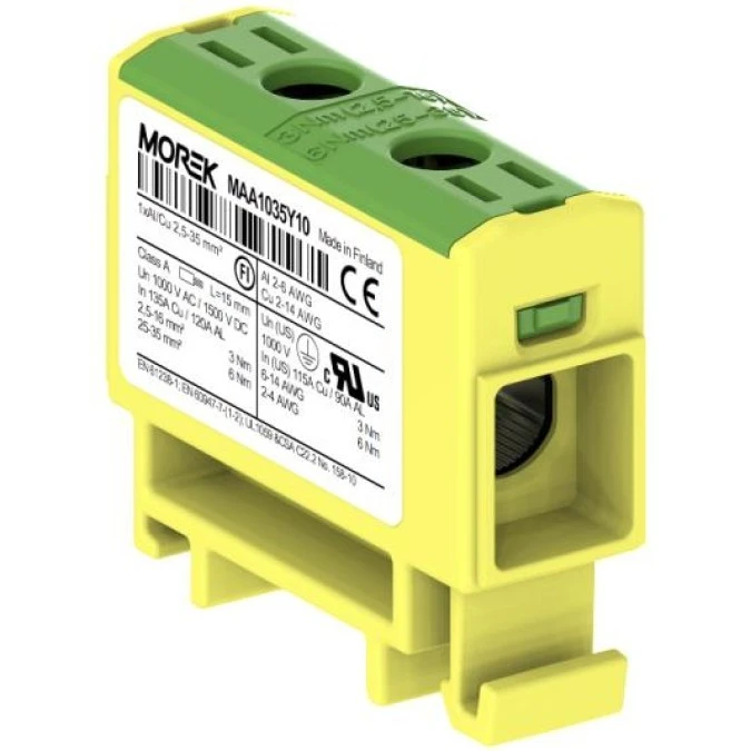 Złączka szynowa 1-torowa Al/Cu 2,5-35mm2 135A 1500V na TH35 żółto-zielony OTL35 MOREK