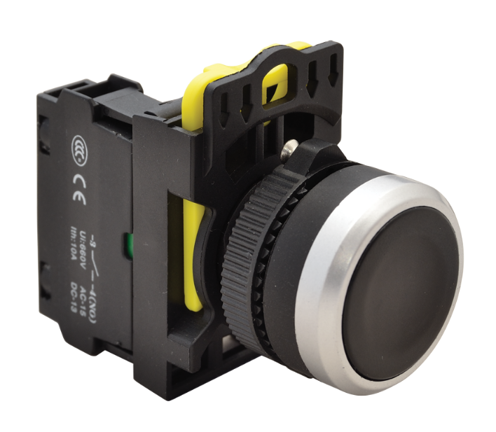 9. Przycisk sterowniczy kryty 22mm IP65 czarny NO zestaw 14.06