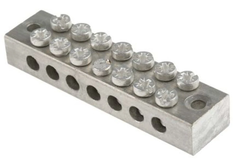 Listwa zaciskowa uziemienia, 0 → 16 AWG, l. żył: 7, zakończenie: Wkręcane, Mosiądz