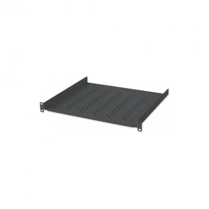 1. Półka 1U 400mm rack 19, 2 pkt mocowania, perforowana czarna 132.74