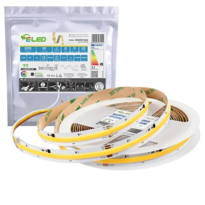 Taśma LED COB cyfrowa WS2811 420 chips 24V 11W 77lm/W ciepła 3000K CRI90+ IP54 - ED00031530 /odcinki po 5 m/