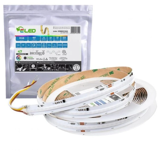 Taśma LED COB RGB cyfrowa WS2811 630 chips 24V 12W IP20 - ED00031532 /odcinki po 5 m/