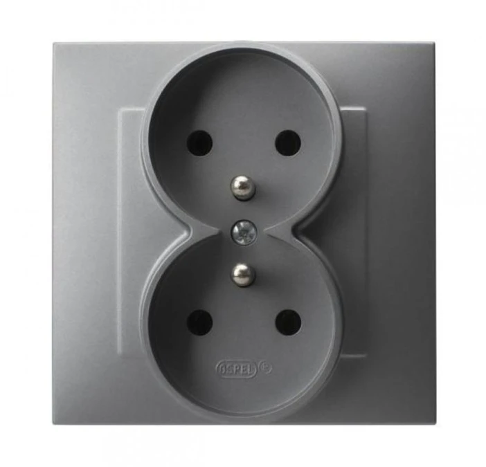 SZAFIR Gniazdo podwójne z uziemieniem kompletne z ramką szary mat GP-2ZZ/70