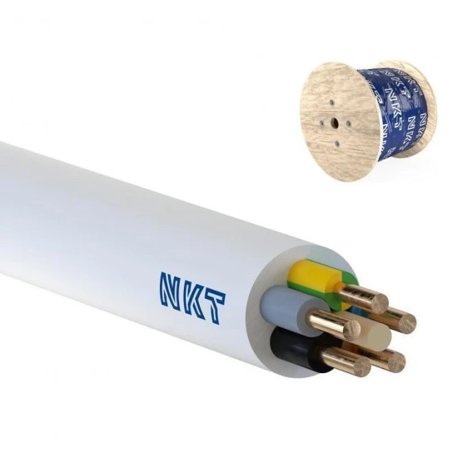 8. Przewód YDY żo 5x1,5 mm2 (450/750V) instalacyjny okrągły biały NYM-J (bębnowy) 172170002S0500 NKT 5.52