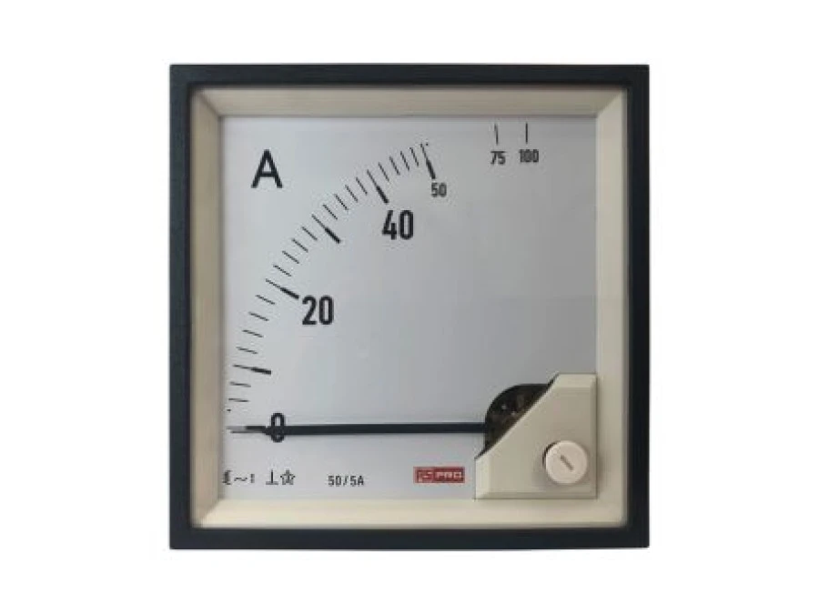 Amperomierz analogowy panelowy 10 (Input) A, 100 (Scle) A, 50/5 (CT) A AC -10C do +65C RS PRO