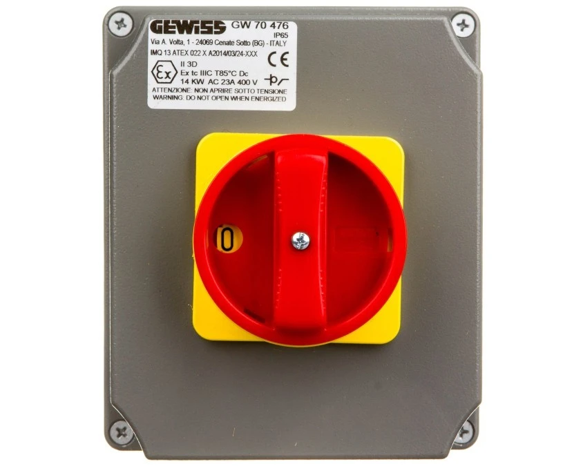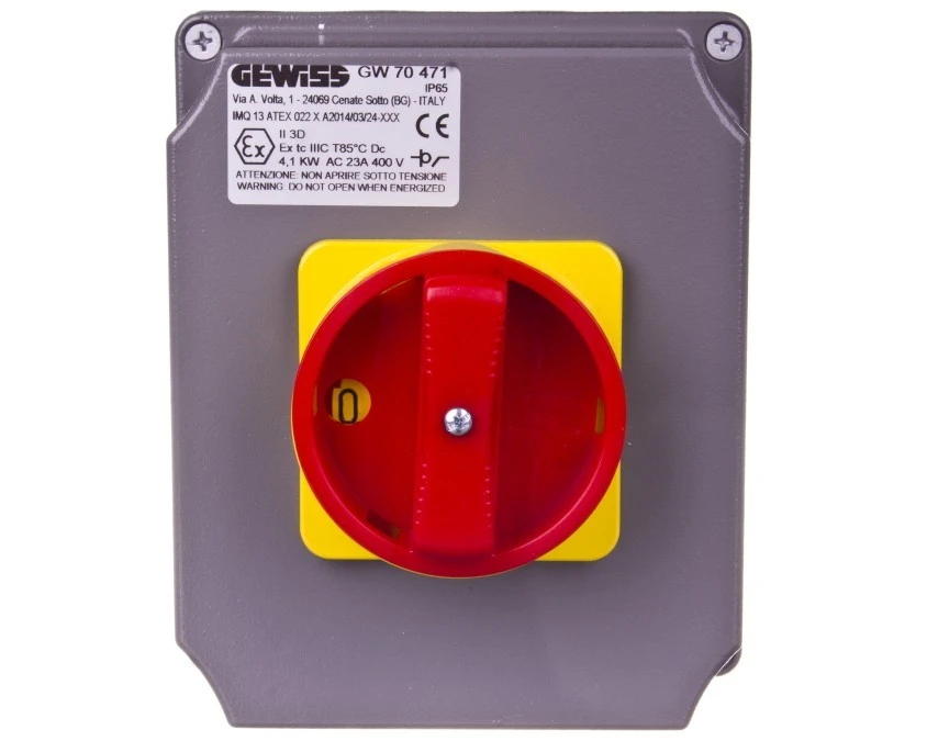 13. Łącznik krzywkowy awaryjny 32A 4P Strefa 22(D) ATEX w puszce aluminiowej GW70476 2217.54