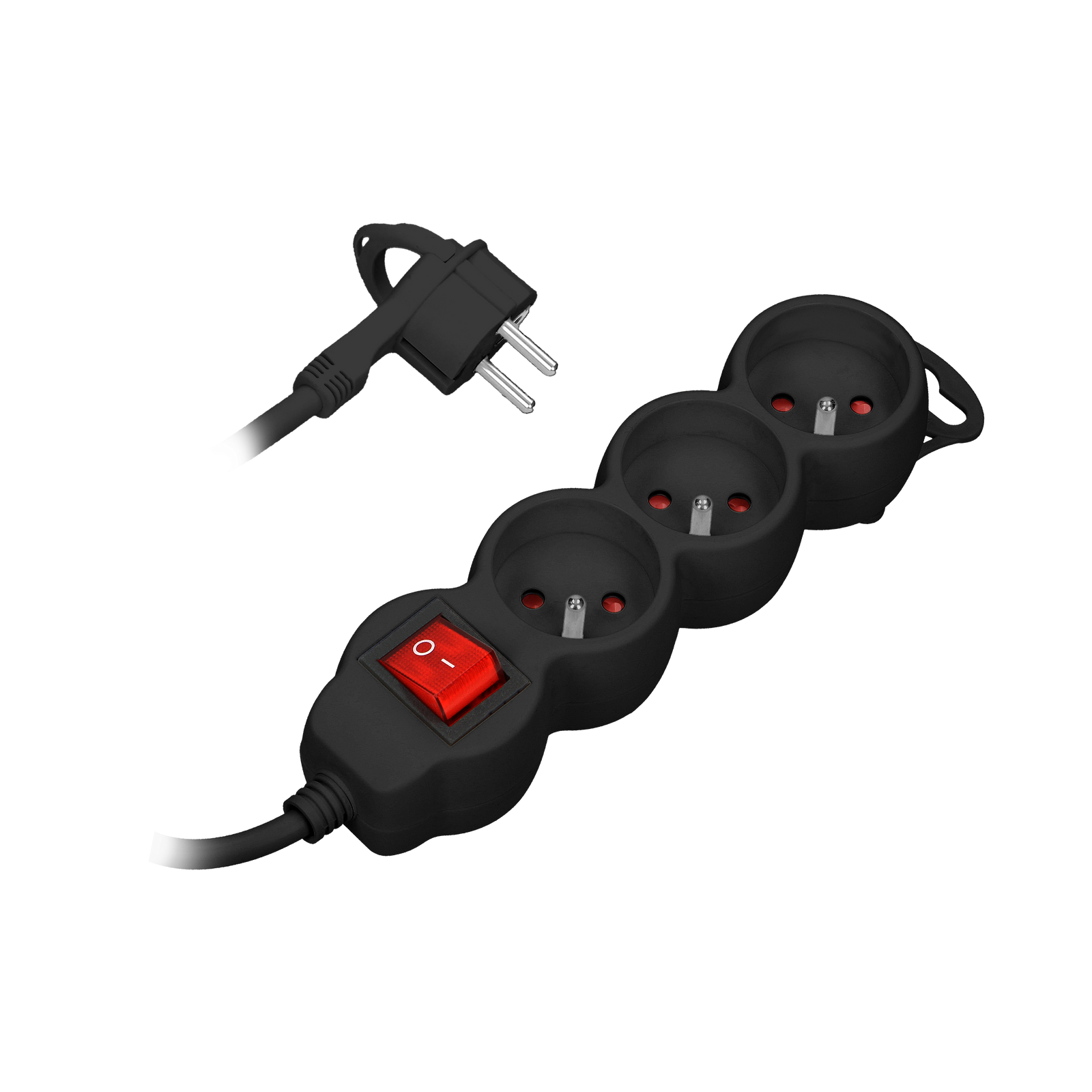 Przedłużacz 3-krotny 2P+Z. z wyłącznikiem. 3m H05VV-F 3x1.0mm2. Imax 10A. płaska wtyczka. czarny OR-AE-13146/B/3M