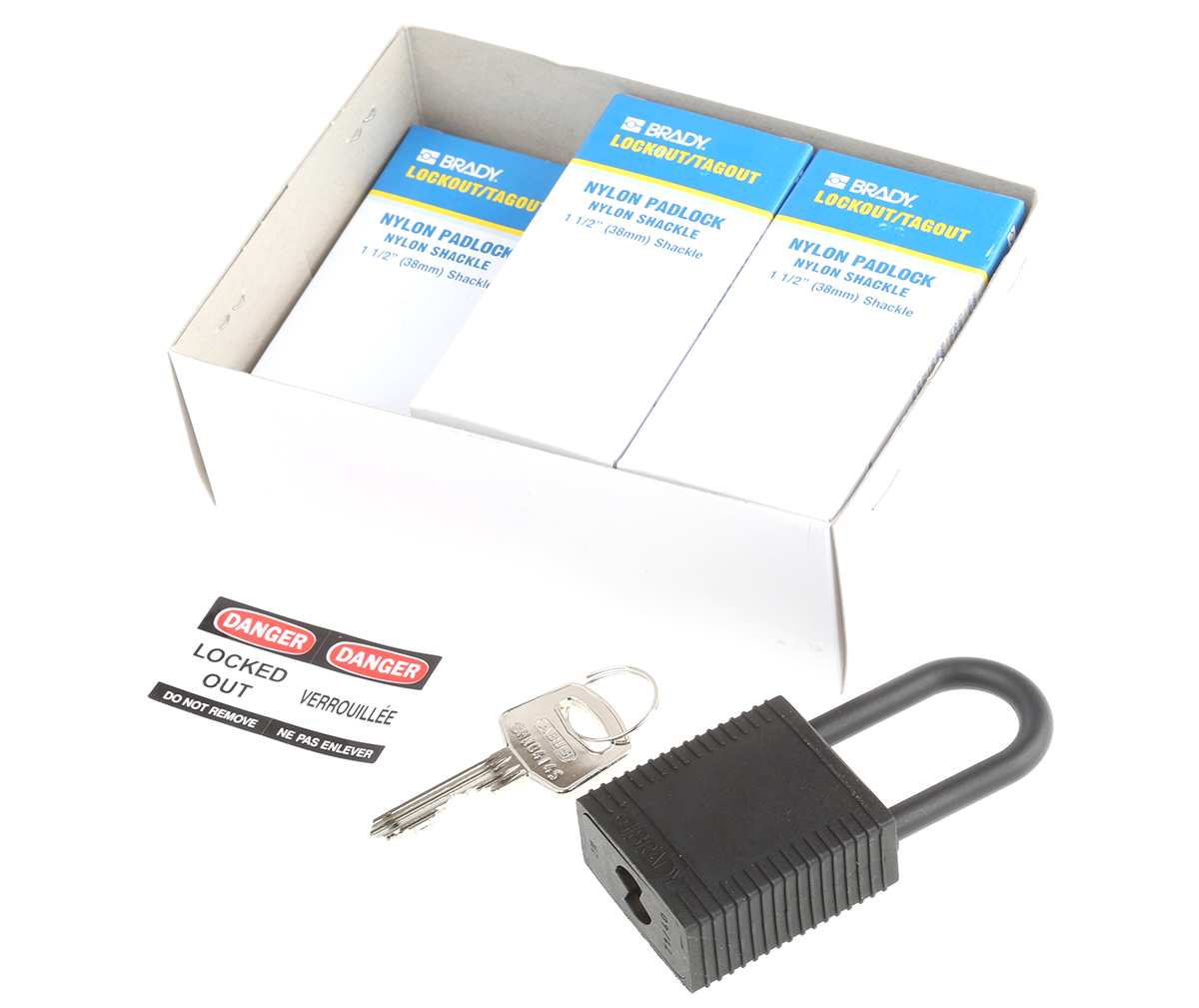 12. Kłódka średnica szekli: 6.35mm Brady z kluczem W budynkach, na zewnątrz Nylonowe Czarny LOTO-6 38,10 x 86,50 x 20,83 mm 688.84