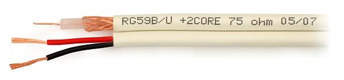 14. Przewód koncentryczny 75 Om CCTV CAMSET/YAR Eca 0,59/3,7/5,5 z dwoma przewodami zasilającymi 230V AC 100 m 368.95