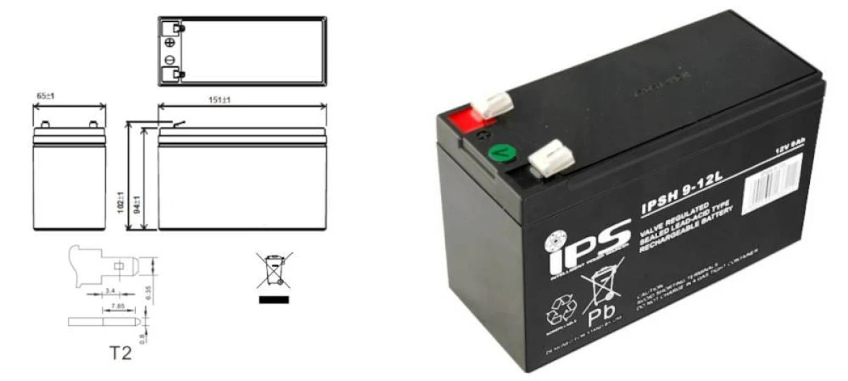1. Akumulator VRLA AGM 12V 9Ah (żywotniość 6-9lat) IPSH 9-12L T2 88.54