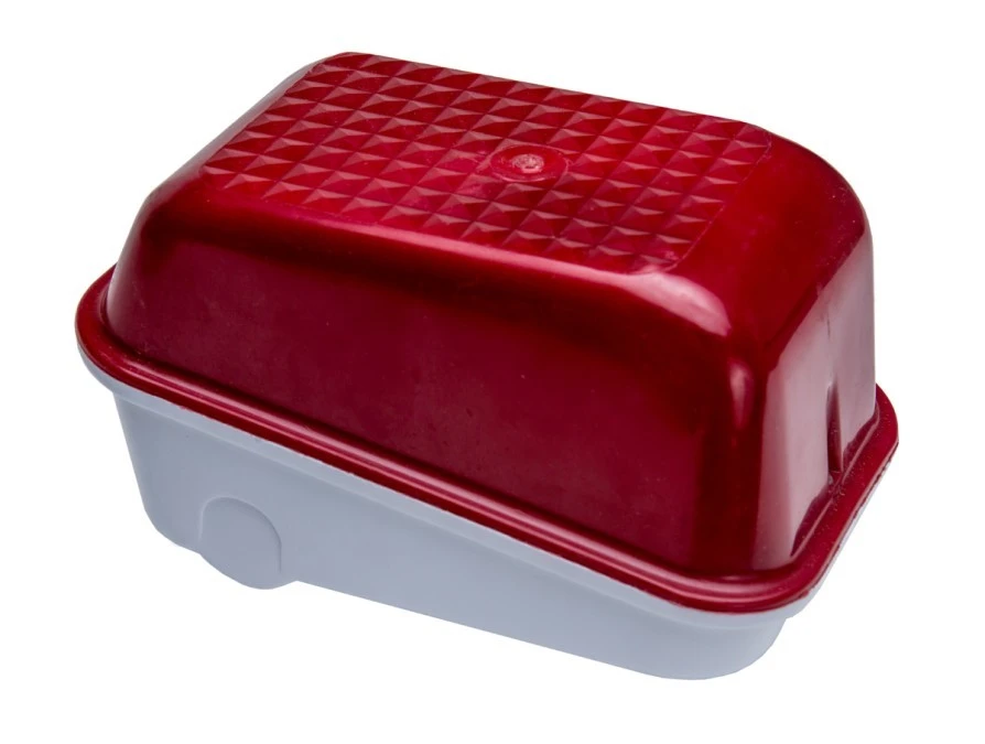 6. Oprawa kanałowa OVAL-7040B/K, E27, 40W, biała-bakelit, klosz czerwony-polipropylen, IP54, oprawa sygnalizacyjna A1170-P2 20.23