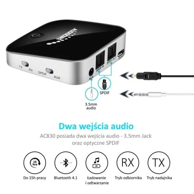 Adapter bluetooth 2 w 1 transmiter odbiornik Audiocore AC830 - Apt-X Spdif - Chipset CSR BC8670 AC830