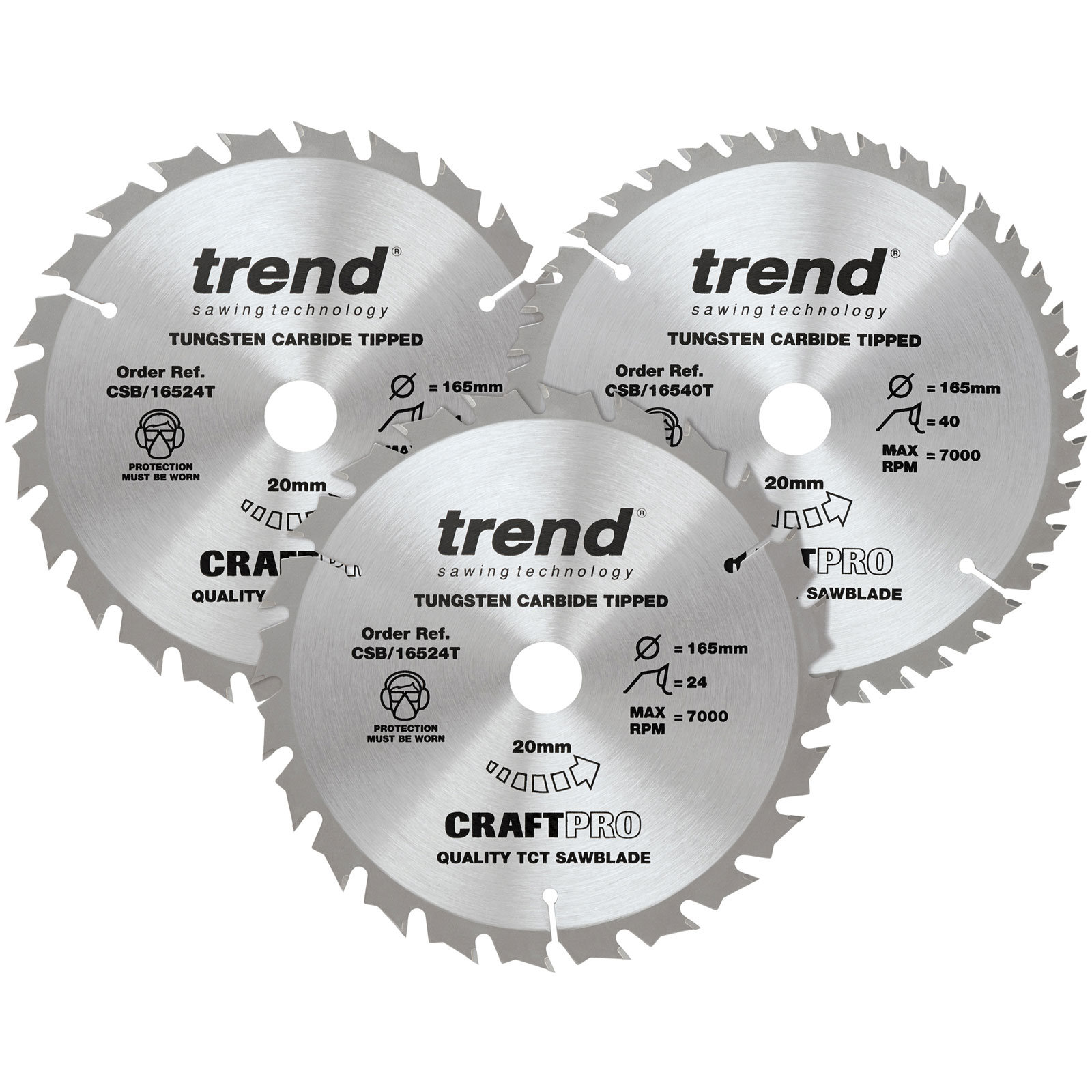 Trend CSB/165/3PK/B CraftPro Cordless Saw Blade 165 x 20mm x 24T/40T/52T (Pk 3)