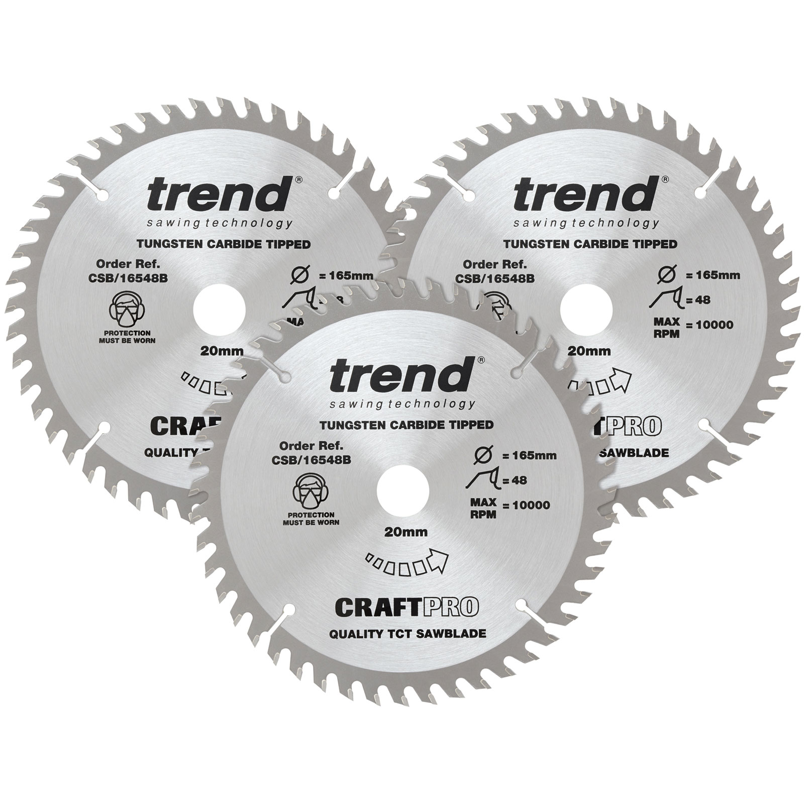 Trend CSB/165/3PK/A CraftPro Plunge Saw Blade 165 x 20mm x 48T (Pack 3)