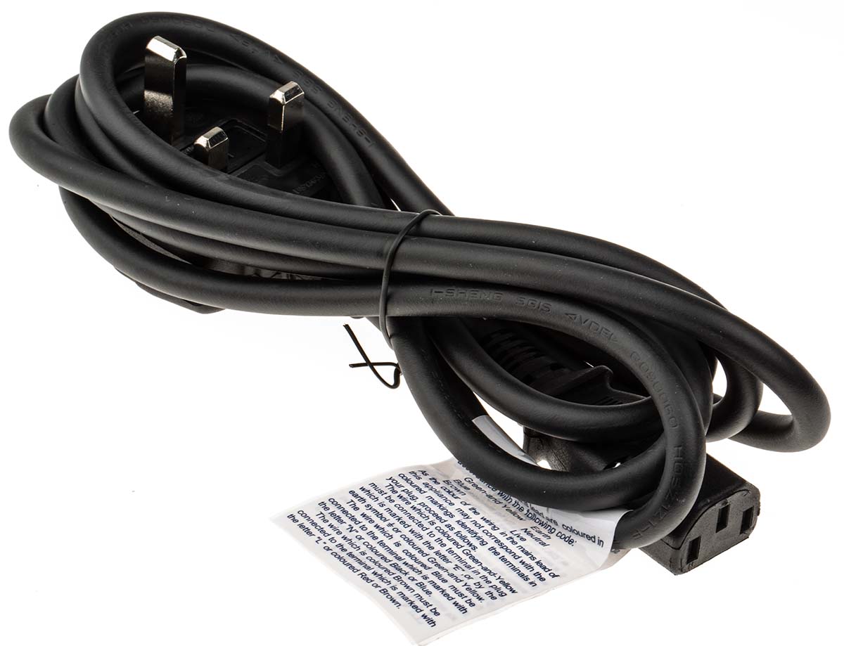 13. Przewód zasilania złącze A: IEC C13, złącze B: Wtyk brytyjski typu G 2m 5 A 250 V 1mm2 Czarny 124.97