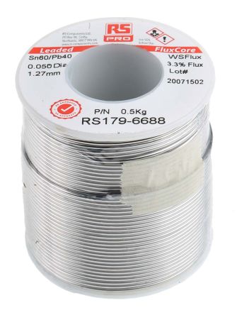 11. Lutowie z ołowiem średnica 1.27mm RS PRO 40% Pb temp. topnienia 183°C 500g 60% Zn 281.01