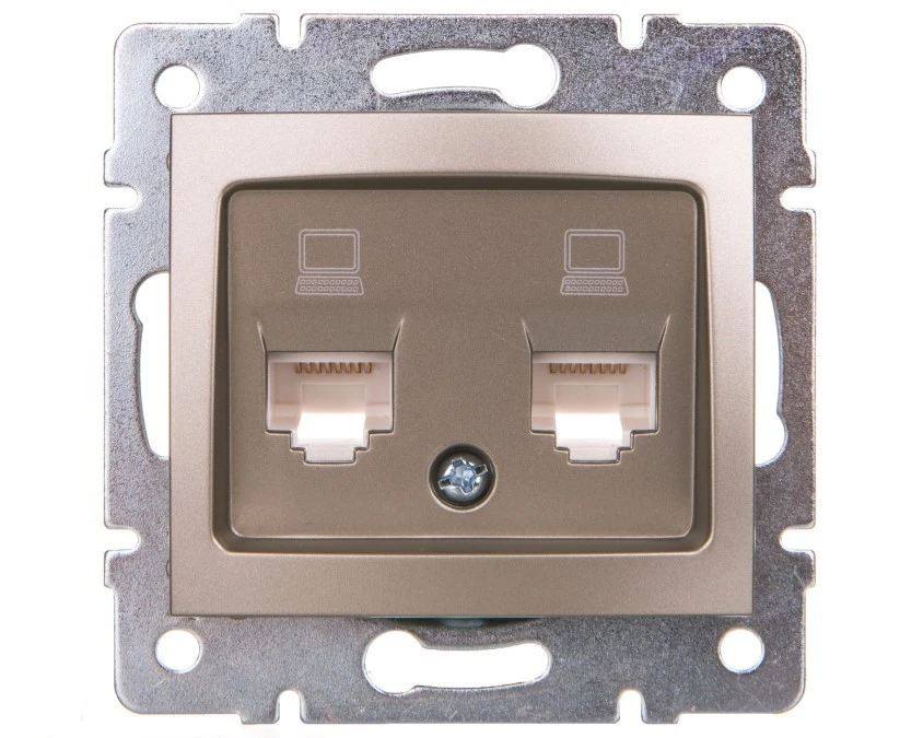 1. DOMO Gniazdo komputerowe podwójne niezależne 2x RJ45Cat 5e Jack szampańskie 011410050 25050 112.50