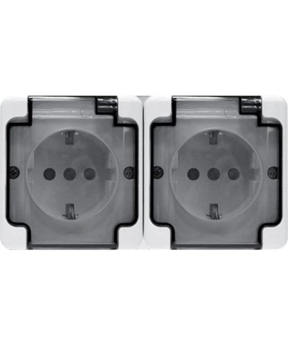 6. BRYZA Gniazdo hermetyczne podwójne z/u IP54 z klapką dymną białe 181480 33.44