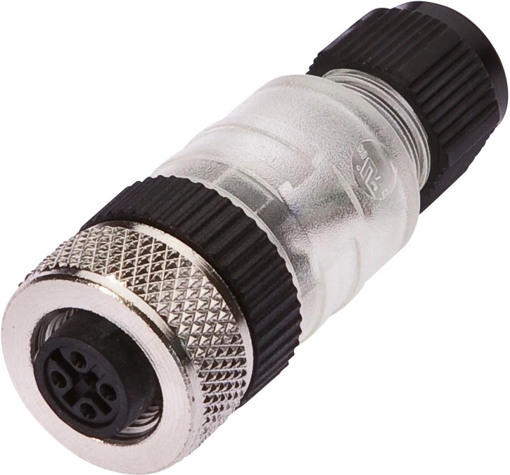 VK003220, Gniazdo kablowe, kątowe, połączenie śrubowe, Ø3-6,5mm, 4A, 30V, -25-90C, M12 żeńskie 4pin, IP67, mosiądz