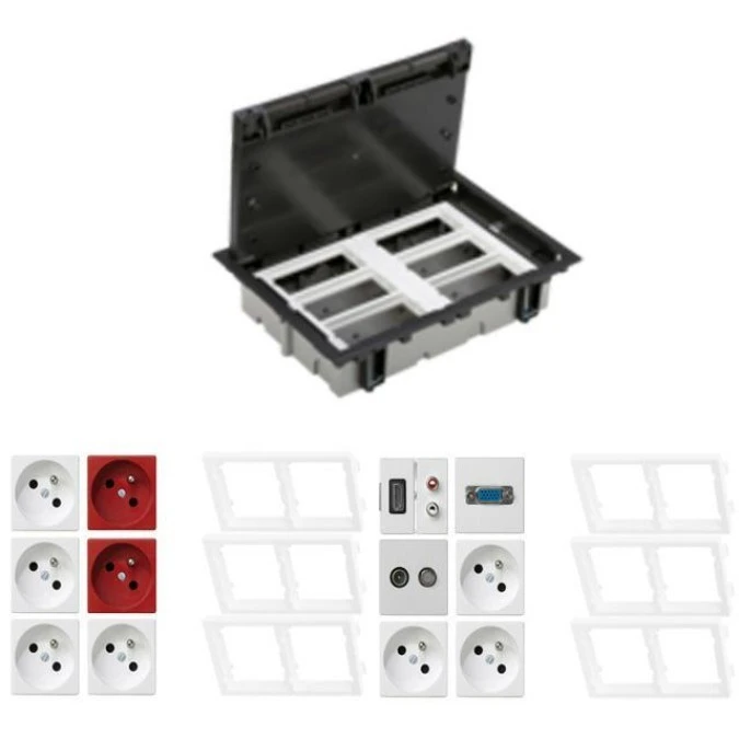 KONTAKT SIMON FLOOR BOX puszka podłogowa 2x gniazdo pojedyncze z/u + 2x gniazdo DATA + 4x gniazdo RJ45 kat. 6 nieekranowany + ka