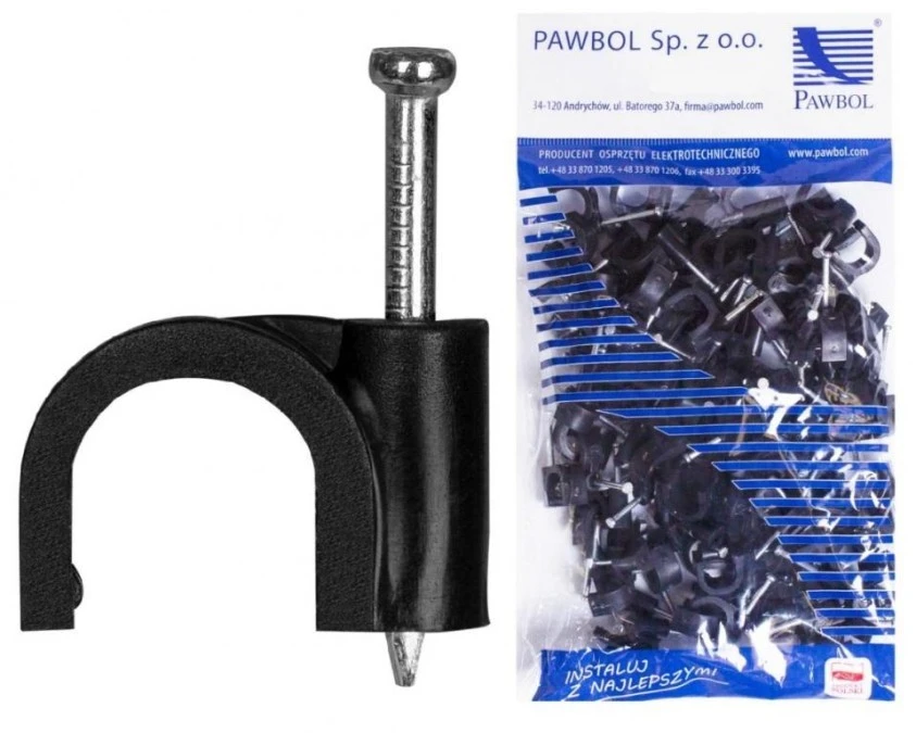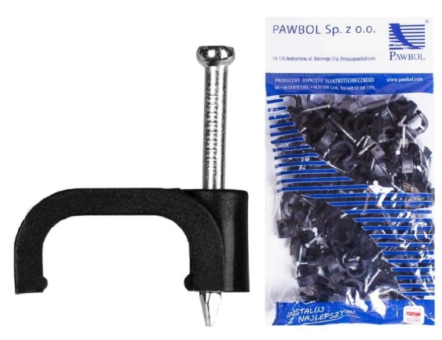 Uchwyt Kablowy Klip Płaski 13/7 Czarny Pawbol