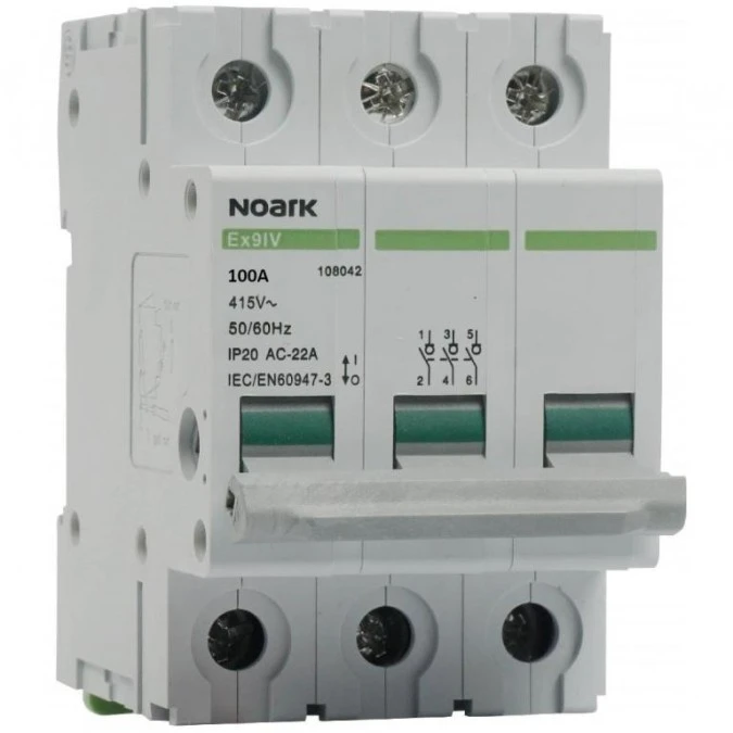 9. Rozłącznik izolacyjny 100A 3-biegunowy 3P (400V AC) 3-modułowy NOARK 57.32