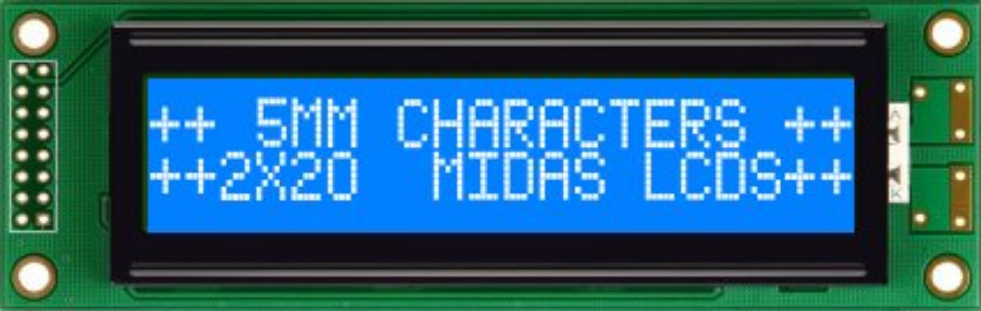 Midas Displays MC42005A6W-BNMLW-V2 4x20 COB LCD White on Blue 5mm Character