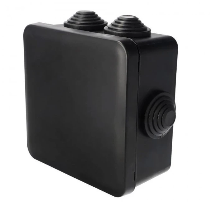 Puszka hermetyczna 100x100x50mm natynkowa z dławikami, bezhalogenowa, odporna na UV,zamknięcie na klik IP55 czarny