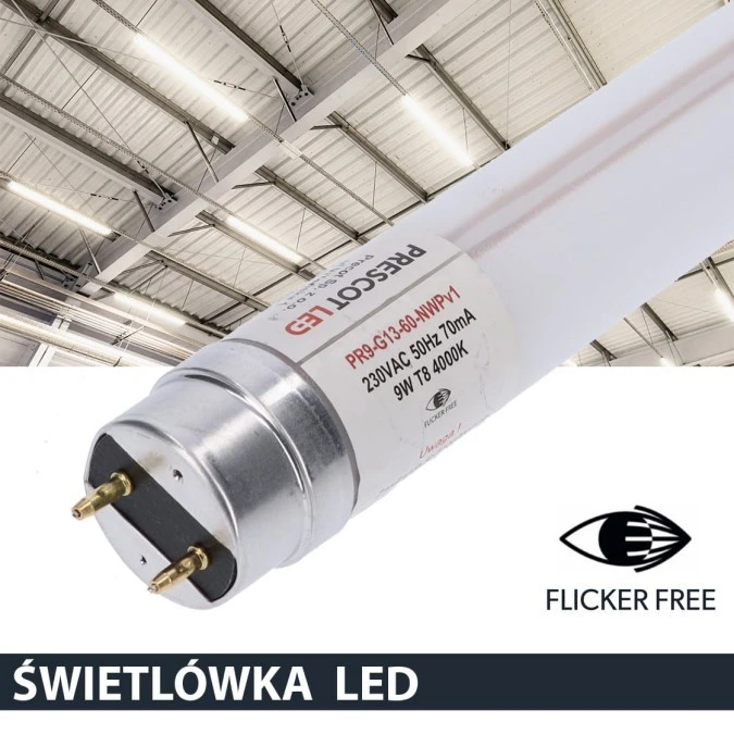 Świetlówka led T8 G13 60cm 9W 4000K 900lm PC Prescot Flicker free