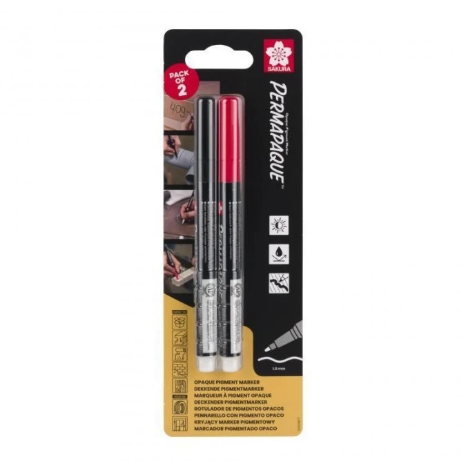 Markery Permapaque z cienką końcówką czarny + czerwony, Sakura SKBLXZPKSN2B