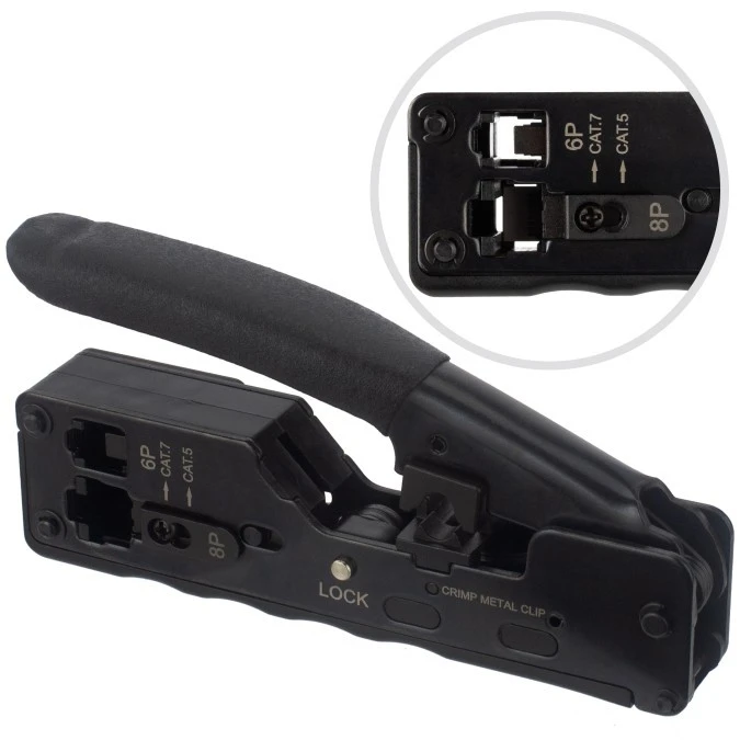 Zaciskarka wtyków modularnych 6p + 8p z funkcją zaciskania ekranu i wtyków przelotowych NEKU