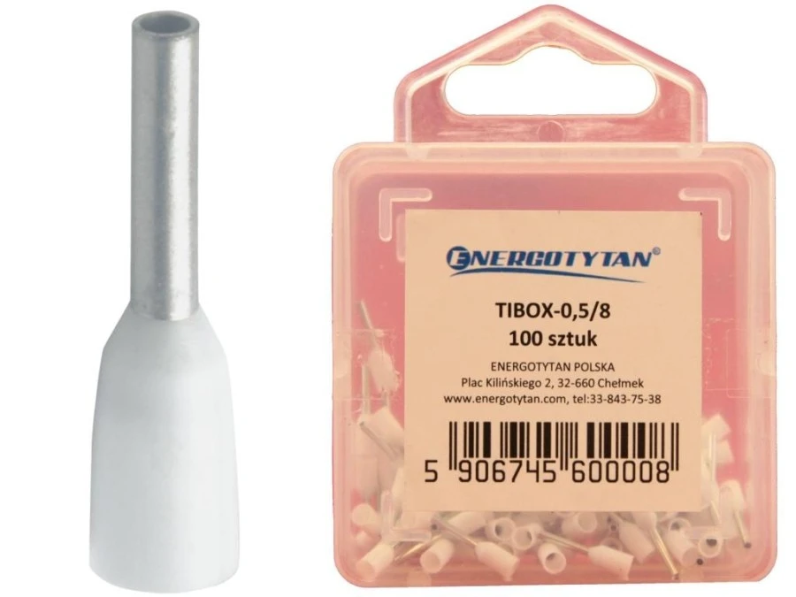 8. Końcówka tulejkowa izolowana TIBOX-0,5/8 biała / tulejki izolowane /100 sztuk/ 3.75