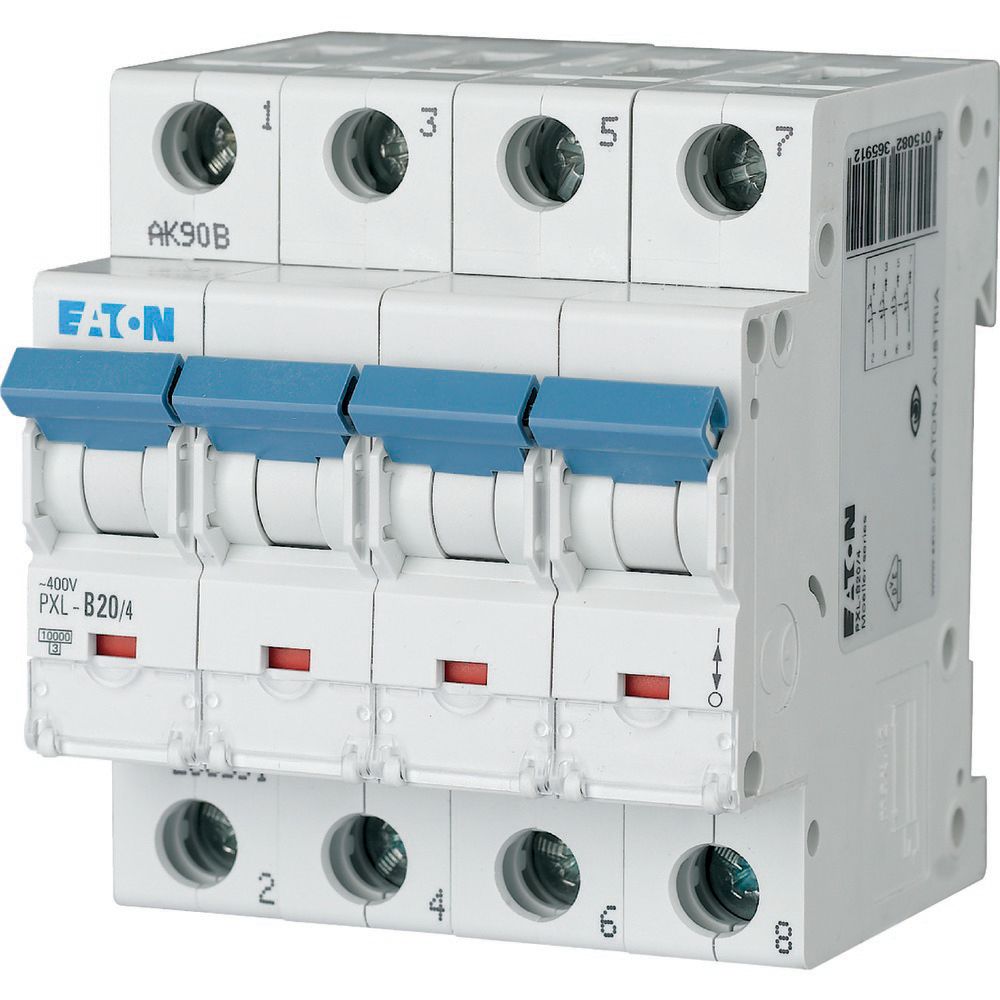 1. Wyłącznik nadprądowy MCB, Typ C, 4-biegunowy, 20A, 400V, Eaton, PXL 935.42
